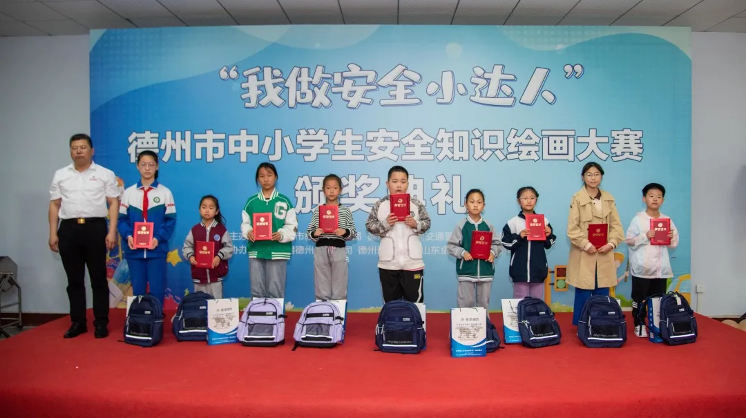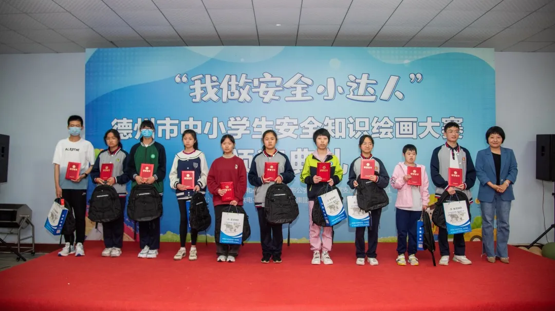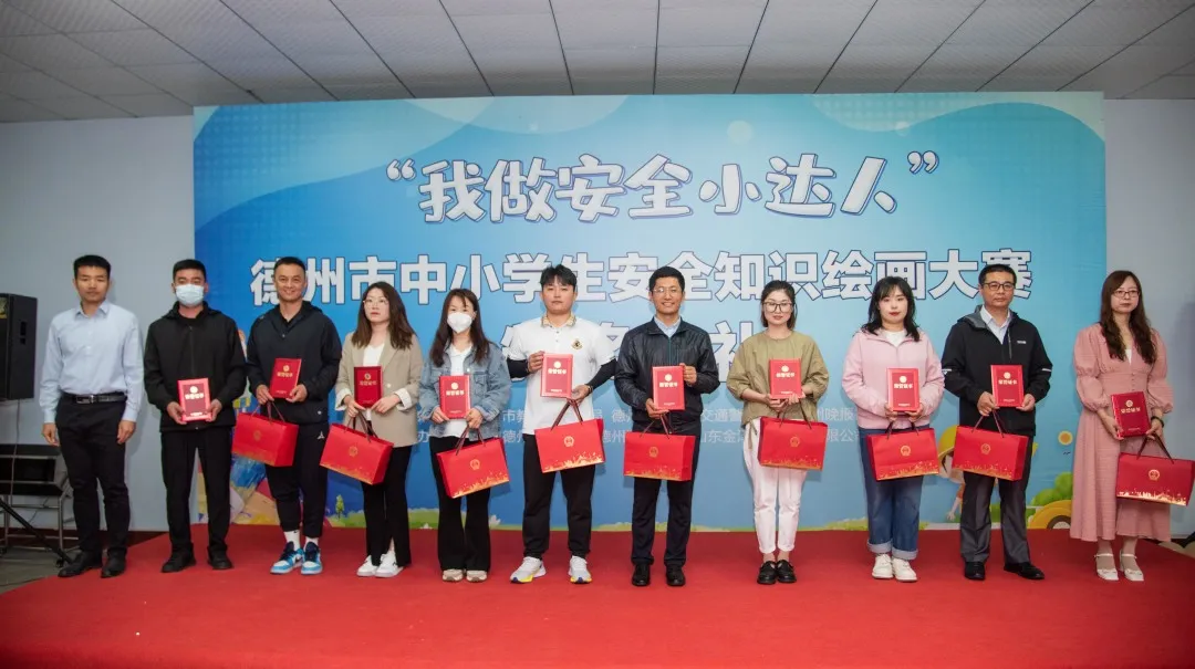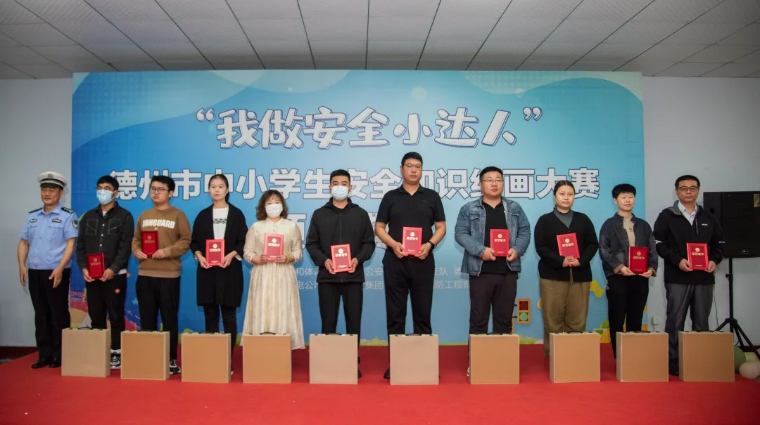 2023年5月27日上午,“我做安全小達人”德州市中小學(xué)生安全知識繪畫大賽活動頒獎典禮在德州通懋集團隆重舉行。出席本次典禮的有德州市公安局交通警察支隊黨委委員、副支隊長王東、德州市教育和體育局安全科科長歐杰、德州市公安局交通警察支隊宣傳教育科科長楊紅省、德州晚報社副社長單歆歆、德州通懋集團董事長蘇愛英、山東金澤消防工程有限公司董事長沙志勇。